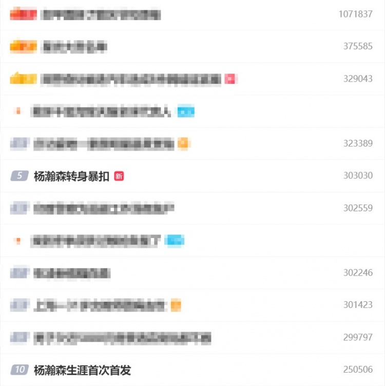 比赛结束后,“杨瀚森转身暴扣”、“杨瀚森生涯首次首发”两个词条都进入了微博热搜前十。